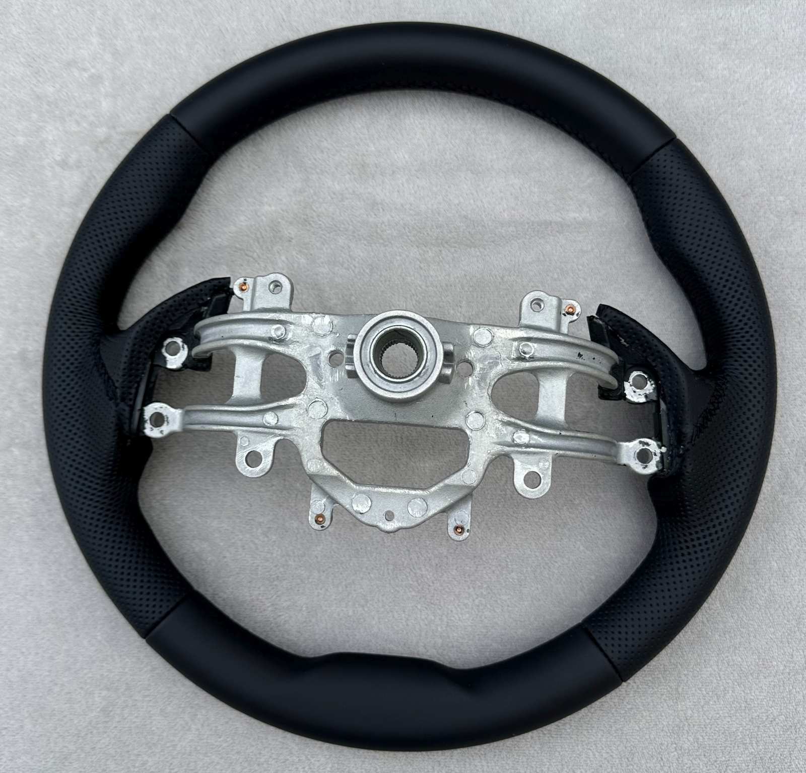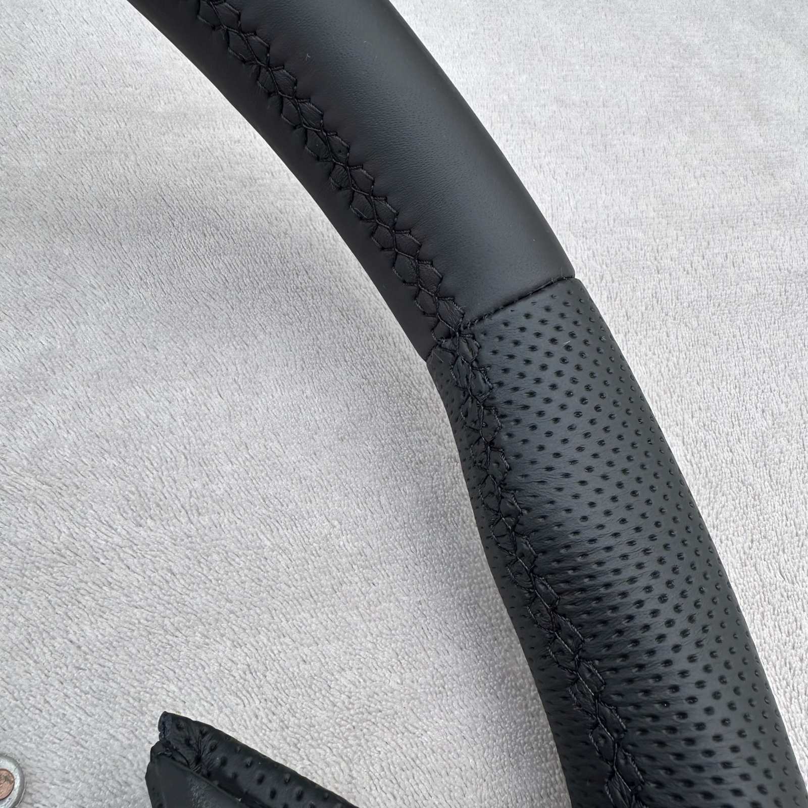 - Bitte beachten Sie, dass regulär das Lenkrad so bezogen wird, wie es auf dem Foto zu sehen ist.