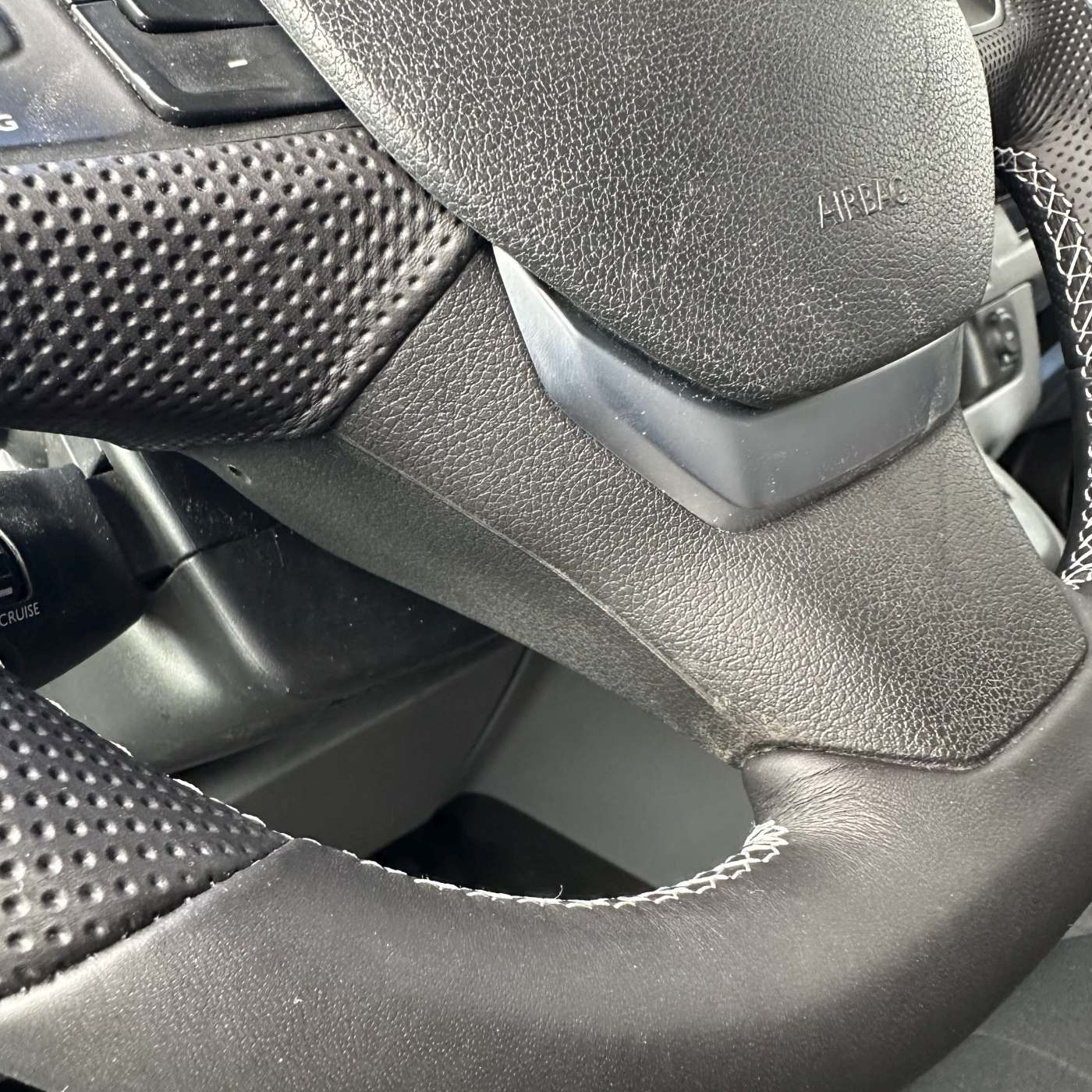 - Bitte beachten Sie, dass regulär das Lenkrad so bezogen wird, wie es auf dem Foto zu sehen ist.